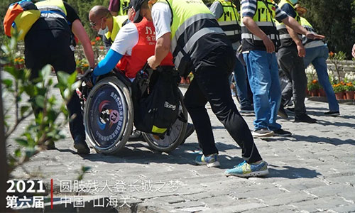 Teamet av frivilliga eskorterade, sporthjularna och med sitt hårda arbete kom rullstolsanvändarna äntligen till den stora väggen. Medan de njöt av det vackra landskapet var de tacksamma för stöd och engagemang för frivilliga för varje framgångsrik aktivitet som hölls.